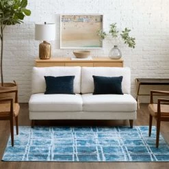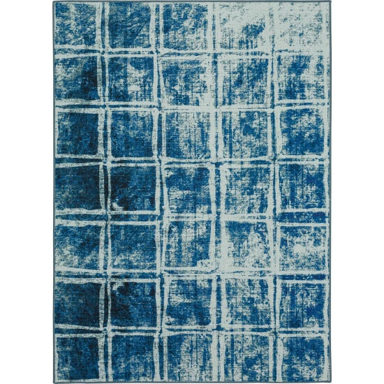 Rows of modern squares inspired by hand drawn artistry are stamped in soft neutral shades across the distressed blue-colored background of this area rug by Mohawk Home. Subtle distressing and color washing techniques add to the originality of this contemporary boho chic beauty.