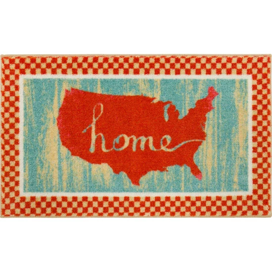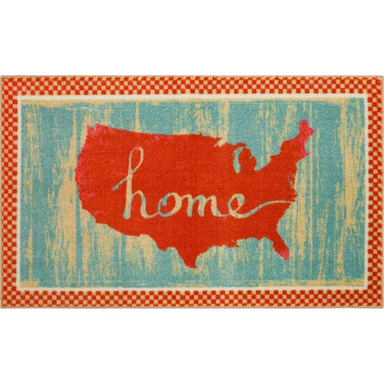 A red and cream checkerboard pattern borders a red motif of the USA over a distressed blue background in the patriotic design of Mohawk Home’s Americana USA Accent Rug. Made with exclusive EverStrand, a premium polyester yarn created from post-consumer recycled plastic bottles, this eco-friendly rug offers sumptuous softness and rich colors with the dependable durability needed for busy households. Available in a variety of scatter sizes, this accent rug is a great choice for adding style to a variety of spaces in your home.