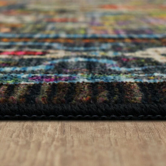 Create a warm bohemian-inspired look on your bare floors with Mohawk Home’s Andile Black area rug. This design showcases a rich black background with stunning details in every color of the rainbow that formulate a Persian motif along the border and traditional medallion designs in the center. When it comes to color, the sky is no longer the limit with the endless possibilities of this design. Thoughtfully crafted in the U.S.A. in small batches utilizing exclusive Precision Dye Injected technology, these patterns are radiantly redefining printed rugs, literally one original design at a time. Designed on a plush EverStrand™ tufted base, each style in this collection features superior strength stain resistance and a cozy soft touch. Consciously created with EverStrand™ yarn, a premium recycled polyester produced from post-consumer plastic water bottles, this innovative collection offers environmentally friendly options that are as easy on the eyes as they are the world around us. Keep your new rug and the flooring beneath looking their best with an essential all-surface, earth conscious rug pad, crafted of 100% recycled fibers and certified Green Label Plus by The Carpet & Rug Institute.