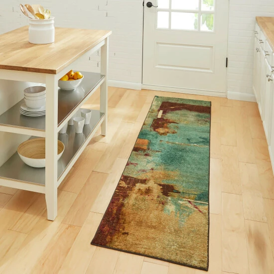 Inspired by abstract art, distressed washes of blue, beige, brown, red and tan color come together in the modern design of Mohawk Home’s Aqua Fusion Area Rug. This silky soft style is available in runners, scatters, 5×8 area rugs, 8×10 area rugs, and other popular sizes, making it ideal for entryways, bedrooms, offices, kitchens, living rooms, kids spaces, dining areas and more. Flawlessly finished with advanced technology, this style features brilliant color clarity and richly defined details. The textured cut loop and cut pile base is created with a premium synthetic yarn that provides proven stain resistance power and reliable resistance to daily wear and tear. Durable and designed to be kid and pet friendly, this area rug is suitable for high traffic areas. Keep your new rug and the flooring beneath looking their best with an essential all surface, earth conscious rug pad, crafted of 100% recycled fibers and certified Green Label Plus by The Carpet & Rug Institute!