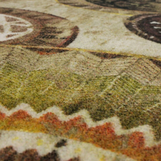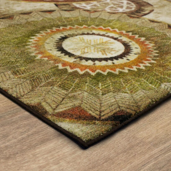 A caravan of contemporary globally inspired medallions cast in a neutral color palette makes decorating a breeze with the Mohawk Home Armindale Area Rug. The oversize medallion motif in versatile brown, beige, and tan, with pops of cinnamon color, will effortlessly transform any space.