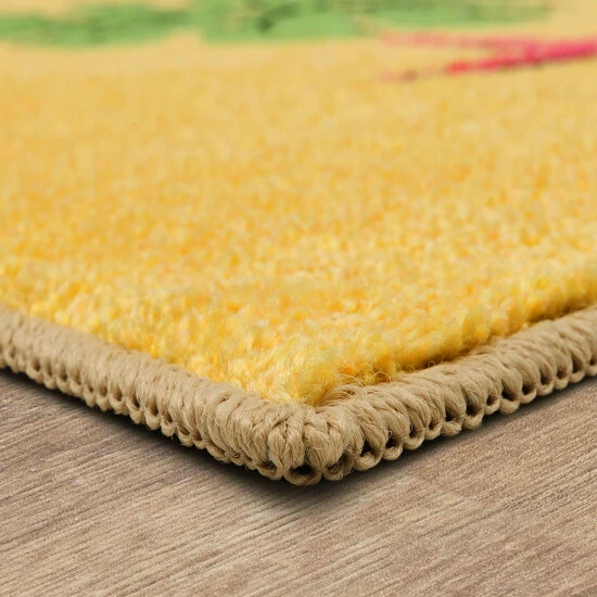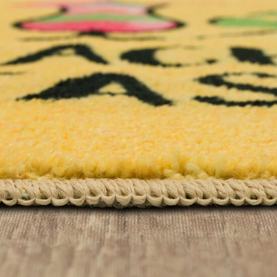 Motifs of tropical palm leaves, a starfish, a slice of watermelon, and a fruity cocktail combine in the summery design of Mohawk Homeโs Beach Please Accent Rug in Yellow. Reenergize your space with radiant color and original artwork digitally printed over a plush canvas of Mohawk Homeโs exclusive ecofriendly EverStrandโข, a premium synthetic yarn created from post-consumer recycled plastic bottles. While EverStrandโข is renowned for its softness, this silky yarn also offers superior strength stain resistance, illustrious fade resistant color clarity and dependable durability ideal for high-traffic spaces with kids and pets.