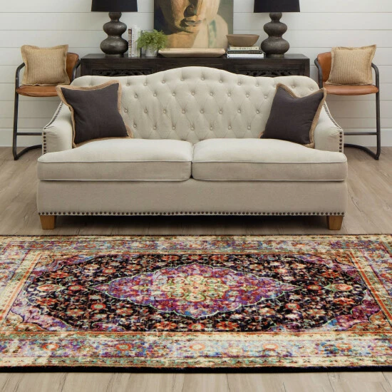 Taking notes from timeless Persian-inspired artistry, Mohawk Home’s Caspar Area Rug showcases an attractive traditional medallion design with floral accents and subtle distressing. Featuring a relaxed color erosion finish, this design is available in a variety of vibrant colors, including purple, pink, blue, and multicolor with bold light and dark accents.