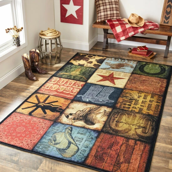 - STYLISH DESIGN: From casual to Americana, this trendsetting Western inspired area rug with a bold color palette can be seamlessly integrated into a variety of home dรฉcor styles.
