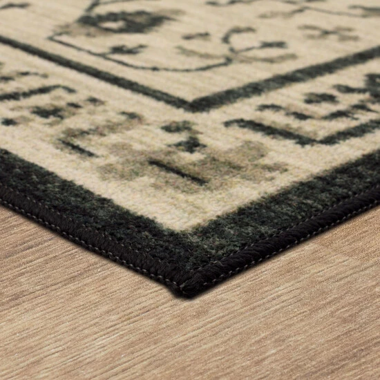 A highly contrasting color palette of cream and charcoal combines with ornate design motifs in Mohawk Homeโs Daran Area Rug in Black. This styleโs neutral color palette and traditional design is an ideal addition to any space and suits both contemporary and classic dรฉcor. Carefully crafted from Mohawkโs exclusive EverStrandโข 100% polyester yarn, this style is precision printed on a loop-pile cut base to ensure supreme quality, soft touch, and superior color clarity.