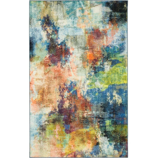 Inspired by abstract artistic techniques, Mohawk Home’s Decollage Area features splashes of contemporary color and a modern painterly inspired motif, illustrated in a vibrant teal and orange color palette.