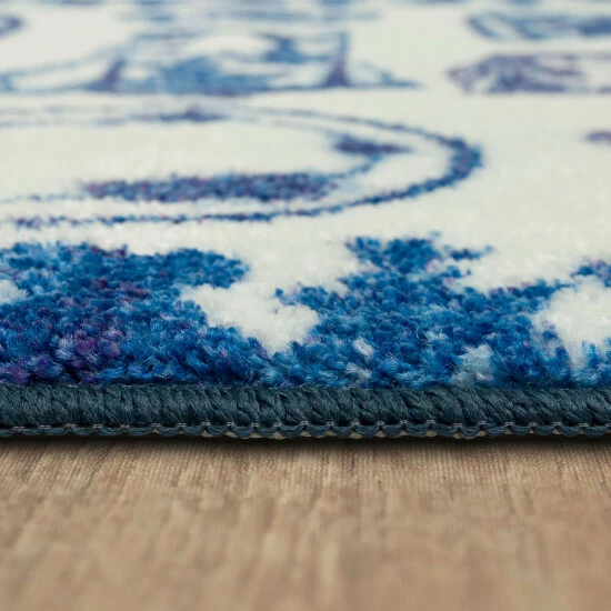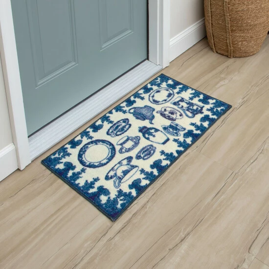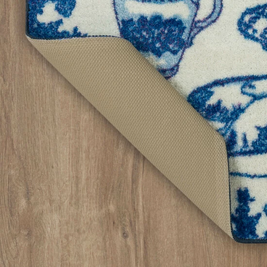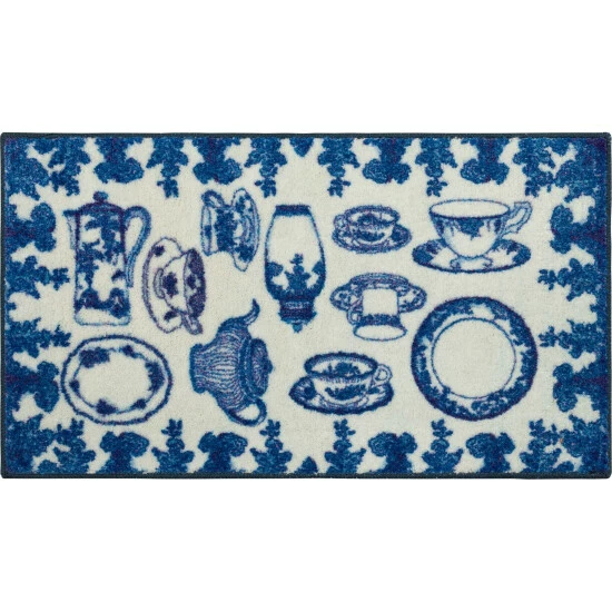 Classic French Country style inspired blue and white toile patterns embellish the tea party scene of the Mohawk Home Delicate Blues Accent Rug in Blue. This designer accent rug is available in size 18โ x 30โ, 24โ x 40โ and 30โ x 50โ and is ideal for entryways, kitchens, dining areas, offices and more. Reenergize your space with radiant color and original artwork digitally printed over a plush canvas of Mohawk Homeโs exclusive ecofriendly EverStrandโข, a premium synthetic yarn created from post-consumer recycled plastic bottles. While EverStrandโข is renowned for its softness, this silky yarn also offers superior strength stain resistance, illustrious fade resistant color clarity and dependable durability ideal for high-traffic spaces with kids and pets.ย