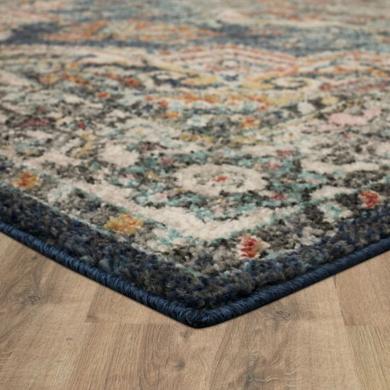 The Mohawk Home Dellen Area Rug features a traditional ornamental medallion in a rich color palette combination of blue, grey, beige, and orange that brings exquisite style to any space. Flawlessly finished with advanced machine woven technology, this collection features a lavish soft feel, brilliant color clarity, and richly defined details with the dependable durability needed for busy households. Available in scatters, runners, and other popular sizes, this area rug is a great choice for adding style to a variety of spaces in your home such as the living room, dining room, bedroom, office, kitchen, hallway, entryway, and more.