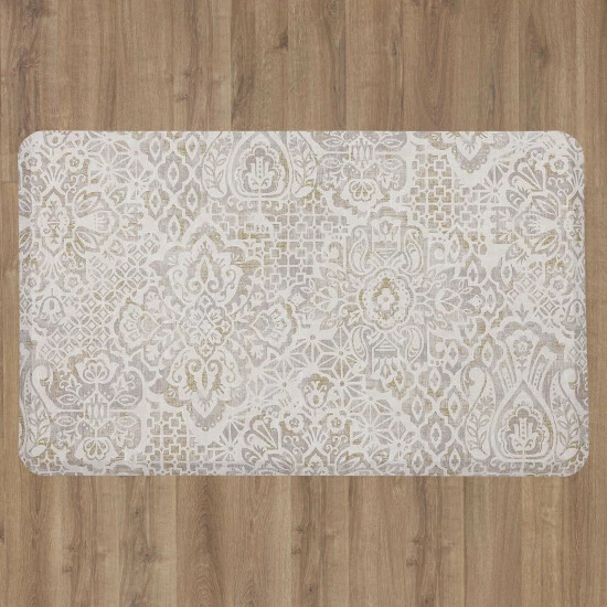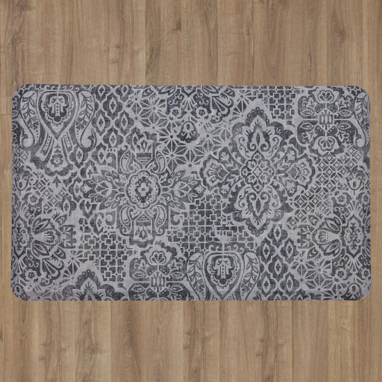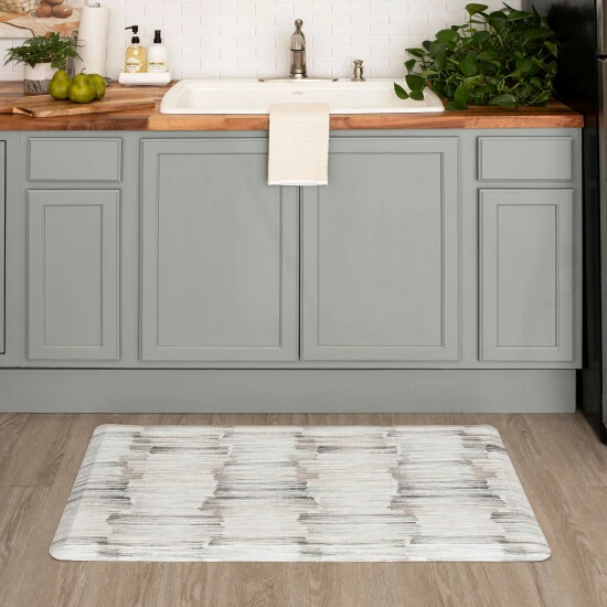 Fashion and function meet in the Mohawk Home Dri-Pro Deluxe Cushion Kitchen Mat collection. Available in a variety of trendy designs with a premium extra thick cushioned core, these mats bring style and soothing comfort to any space. The advanced anti-fatigue construction offers welcomed relief from back, leg and foot discomfort often caused by standing on hard surfaces, while the skid resistant backing keeps them in place under high traffic use. A great choice in busy areas such as in the kitchen, bar space, laundry room, or entryway, these mats feature low maintenance Dri-Pro technology that is essential for tackling spills; simply wipe away moisture and messes.