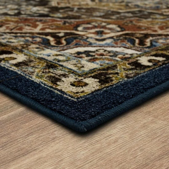 The Mohawk Home Eanes Area Rug features an intricate traditional medallion inspired design in a rich color palette. Fabulously finished with our advanced print technology, this collection displays a subtle sheen, crisp color clarity, and defined details. Made with wear dated nylon, these area rugs offer dependable durability, superior stain resistance, and an unbeatable resiliency against daily wear-and-tear. Available in scatters, runners, and popular sizes such as 5×8 and 8×10, this area rug is ideal for adding style to a variety of spaces in your home.
