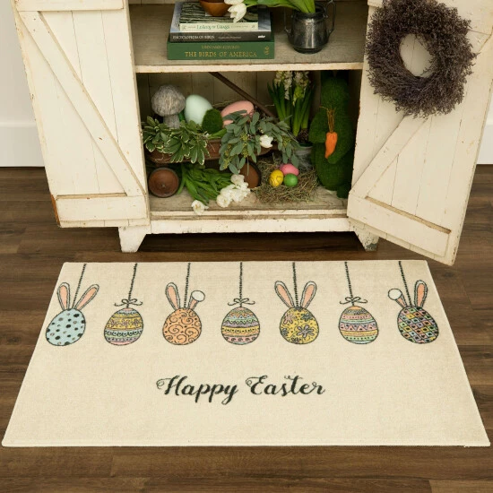 Ornately embellished Easter eggs and whimsical bunny ears create sweet springtime style and wish guests a happy Easter with Mohawk Home’s Easter Ornaments Accent Rug. A pastel palette of pink, yellow, blue, purple, green, peach and white is fresh for spring! Made with exclusive EverStrand, a premium polyester yarn created from post-consumer recycled plastic bottles, this eco-friendly rug offers sumptuous softness and rich colors with the dependable durability needed for busy households. Available in a variety of scatter sizes, this accent rug is a great choice for adding style to a variety of spaces in your home.