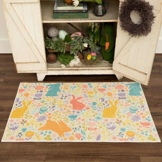Sweet shapes of hoppy bunnies and fresh flowers add springtime style anywhere with Mohawk Home’s Easter Silhouette Accent Rug. Pastel hues of pink, blue, yellow, peach, green, and purple pop over a white background. Made with exclusive EverStrand, a premium polyester yarn created from post-consumer recycled plastic bottles, this eco-friendly rug offers sumptuous softness and rich colors with the dependable durability needed for busy households. Available in a variety of scatter sizes, this accent rug is a great choice for adding style to a variety of spaces in your home.