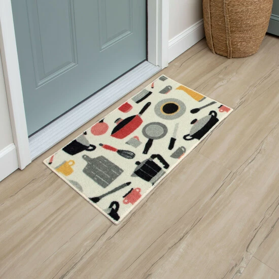 - FUN DESIGN: This trendsetting kitchen inspired area rug with a vibrant color palette instantly adds fun and festive flair to any area.