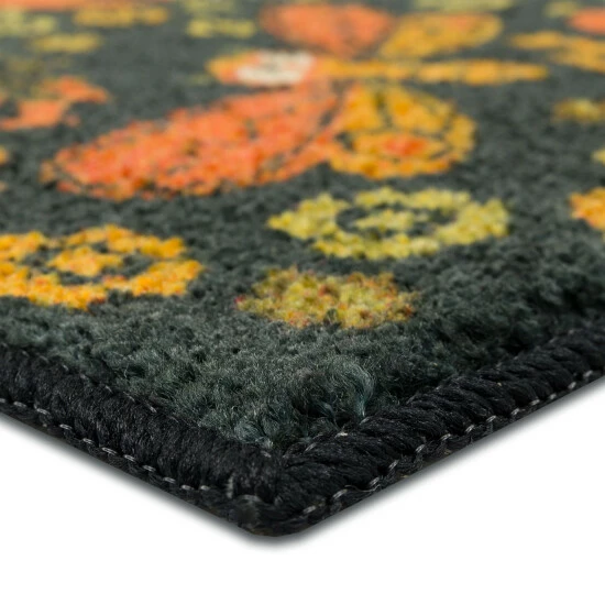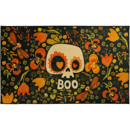 Complement your Halloween decor with a celebratory nod to Mexico’s holiday, Dรญa de los Muertos. ย Greet all your holiday guests with this Halloween themed entryway rug. Crafted in the United States from recycled polyester, this accent rug with non-skid backing is a fun statement piece that is a great way to add to your seasonal dรฉcor. Featuring original artwork digitally printed over a plush canvas polyester, a premium synthetic yarn renowned for its softness, this silky yarn also offers superior strength stain resistance, illustrious fade resistant color clarity and dependable durability ideal for high-traffic spaces with kids and pets. ย Cast a decorative spell on your home this Halloween!