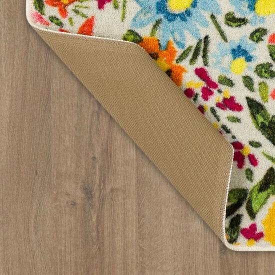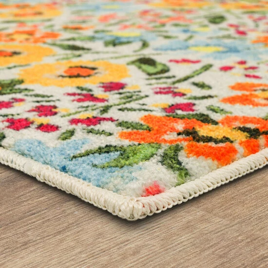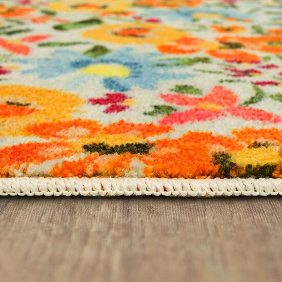 A stunning garden inspired floral motif is cast in colorful shades of pink, orange, yellow, and blue over a cream background, in the Mohawk Home Flower Field Area Rug. This accent rug is ideal for entryways, kitchens, laundry rooms and anywhere else you desire seasonal style. Made with exclusive EverStrand, a premium polyester yarn created from post-consumer recycled plastic bottles, this eco-friendly rug offers sumptuous softness and rich colors with the dependable durability needed for busy households. Available in a variety of scatter sizes, this accent rug is a great choice for adding style to high traffic areas in your home.