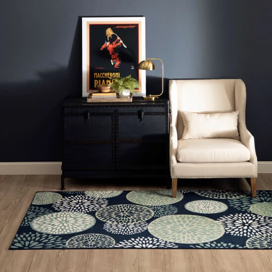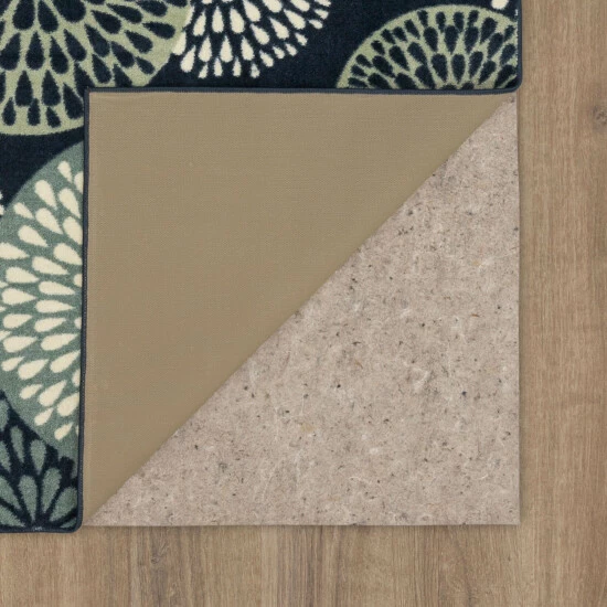 Floral inspired circular medallions are rendered in a cool palette of navy, aqua and white in Mohawk Home’s Foliage Friends Area Rug in Blue. This silky soft style is available in runners, scatters, 5×8 area rugs, 8×10 area rugs, and other popular sizes, making it ideal for bedrooms, living rooms, dining areas, kids spaces and more. Flawlessly finished with advanced technology, this style features brilliant color clarity and richly defined details. This family friendly design is created with a premium synthetic yarn that provides proven stain resistance power and reliable resistance to daily wear and tear. Durable and designed to be kid and pet friendly, this area rug is suitable for high traffic areas. Keep your new rug and the flooring beneath looking their best with an essential all surface, earth conscious rug pad, crafted of 100% recycled fibers and certified Green Label Plus by The Carpet & Rug Institute!