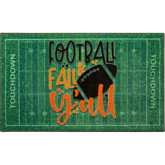 Showcasing a playful football themed design featuring a detailed football field motif with fall themed text, the Mohawk Home Football & Fall Yall Area Rug will add seasonal flair to any space. Made with exclusiveย EverStrand, a premium polyester yarn created from post-consumer recycled plastic bottles, this eco-friendly rug offers sumptuous softness and rich colors with the dependable durability needed for busy households. A great choice for high-traffic areas and homesย with kids and pets. Available in popular sizes such as 5×8 and 8×10, this area rug is a great choice for adding style to a variety of spaces in your home.ย