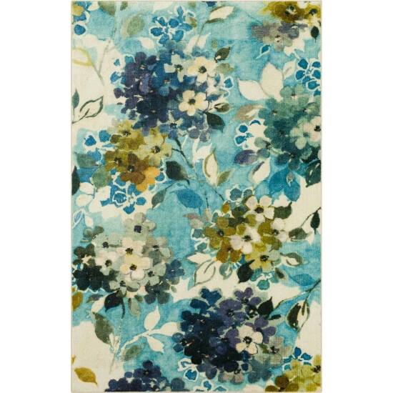 Watercolor-inspired bouquets of blossoms burst into aqua blue, indigo navy, lush green, and pure white color in the modern floral motif of the Mohawk Home Hydrangea Blooms Area Rug. Made with exclusive EverStrand, a premium polyester yarn created from post-consumer recycled plastic bottles, this eco-friendly rug offers sumptuous softness and rich colors with the dependable durability needed for busy households. Available in scatters, runners, 5×8, 8×10, and other popular sizes, this area rug is a great choice for adding style to a variety of spaces in your home.