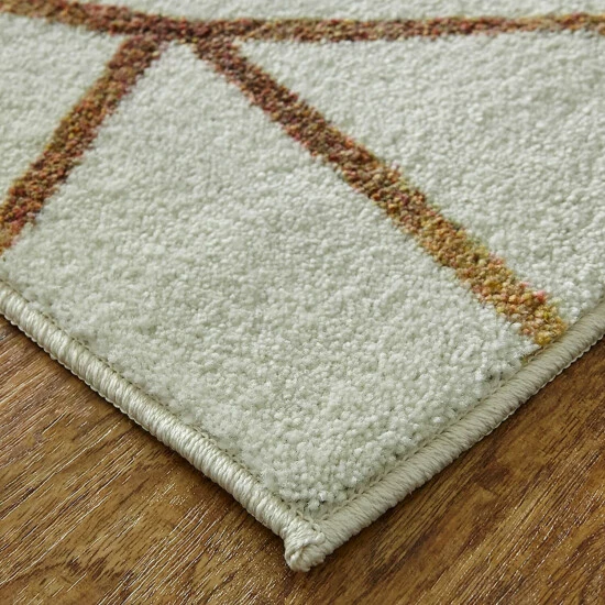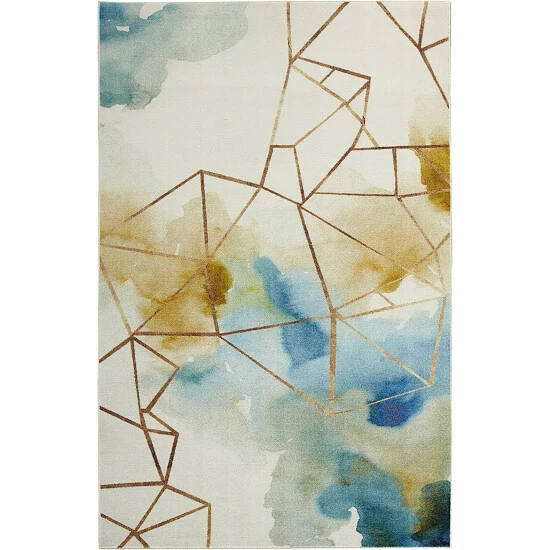 A watercolor inspired palette of cream, blue, and butterscotch yellow come together with a gold abstract geometric design to create the contemporary motif of the Mohawk Home Illusion Area Rug. The cool complementary base colors with gold linear accents showcase a modern aesthetic that effortlessly transforms any space.