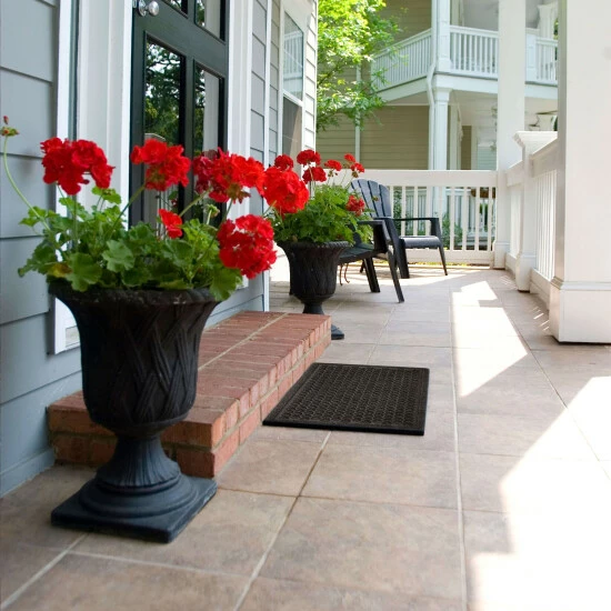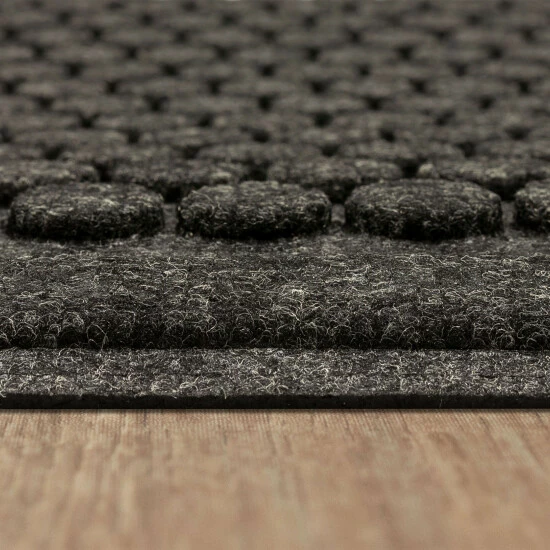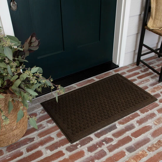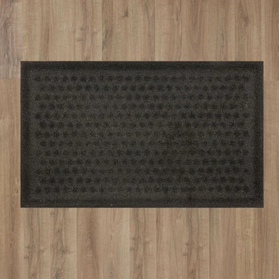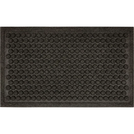 Style your entryway with the durable Dots door mat from Mohawk Home. The polyester and recycled rubber mat is patterned with a textured dot surface that absorbs moisture and removes dirt, while the non-skid backing keeps the mat secure. Stain-resistant, all-weather, and easy-to-clean, this mat is perfect for front doors, garages, or back patios.