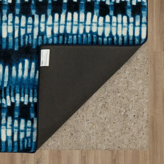 Textured tribal inspired stripes featuring rows of dashed lines cast in a cool palette of indigo, midnight, pale powder blue and bright white add modern contemporary style to any space with Mohawk Home’s Imprint Area Rug in Navy. When it comes to color, the sky is no longer the limit with the endless possibilities of Mohawk Home’s revolutionary Prismatic Collection. Thoughtfully crafted in the U.S.A. in small batches utilizing Mohawk Home’s exclusive Precision Dye Injected Printer, the Prismatic Collection is radiantly redefining printed rugs, literally one original design at a time. Designed on a plush EverStrandโข tufted base, each style in this collection features superior strength stain resistance and a cozy soft touch. Consciously created with EverStrandโข yarn, a premium recycled polyester produced from post-consumer plastic water bottles, this innovative collection offers environmentally friendly options that are as easy on the eyes as they are the world around us. Keep your new rug and the flooring beneath looking their best with an essential all-surface, earth conscious rug pad, crafted of 100% recycled fibers and certified Green Label Plus by The Carpet & Rug Institute.