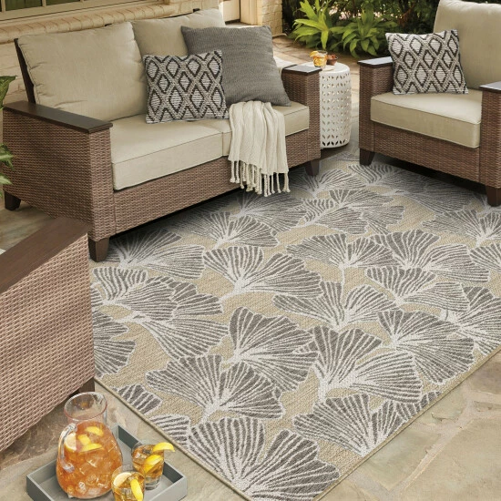 - STYLISH DESIGN: From casual to transitional, this trendsetting botanical inspired area rug with a neutral color palette can be seamlessly integrated into a variety of indoor or outdoor home dรฉcor styles.
