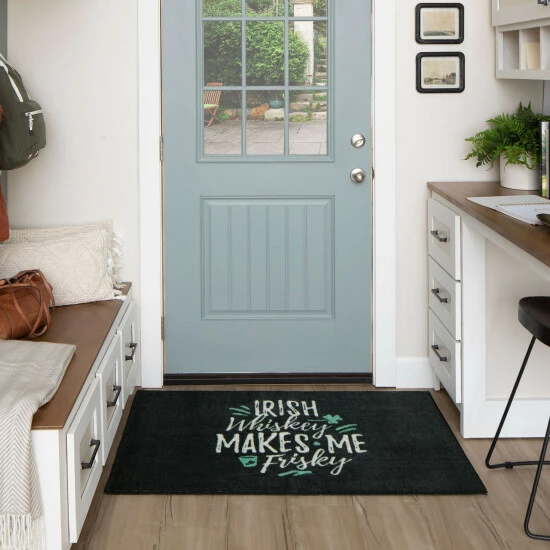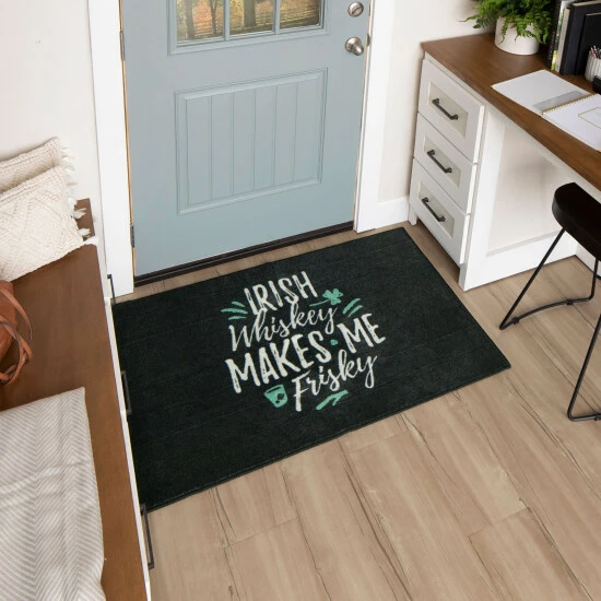 Calling all whiskey lovers! The cheeky design of Mohawk Home’s Irish Whiskey Accent Rug features a whiskey glass and shamrock motif over a black background. Made with exclusive EverStrand, a premium polyester yarn created from post-consumer recycled plastic bottles, this eco-friendly rug offers sumptuous softness and rich colors with the dependable durability needed for busy households. Available in a variety of scatter sizes, this accent rug is a great choice for adding style to a variety of spaces in your home.