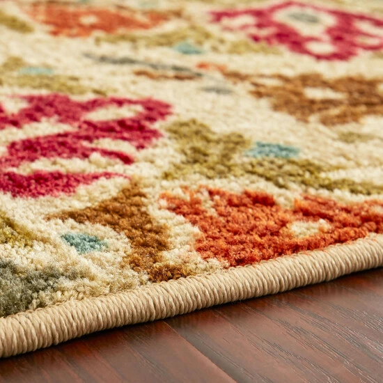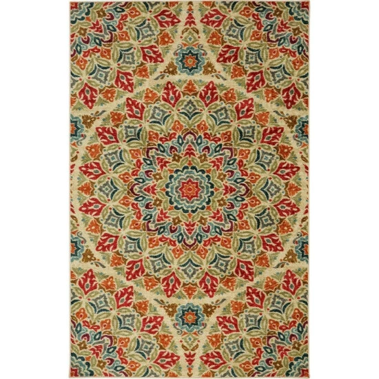 Add an elegant and beautiful look to your home with this medallion area rug. This rug features an oversized floral medallion design in striking red, blue, orange, and green jewel tones on a neutral beige base. It will invigorate your space with its detailed design and floral accents, bringing a stunning focal point to any floor.