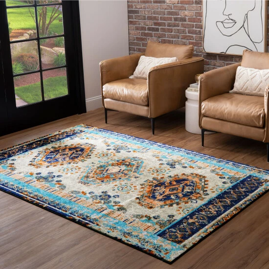 - STYLISH DESIGN: From bohemian to traditional, this trendsetting area rug with a bold color palette can be seamlessly integrated into a variety of home dรฉcor styles.