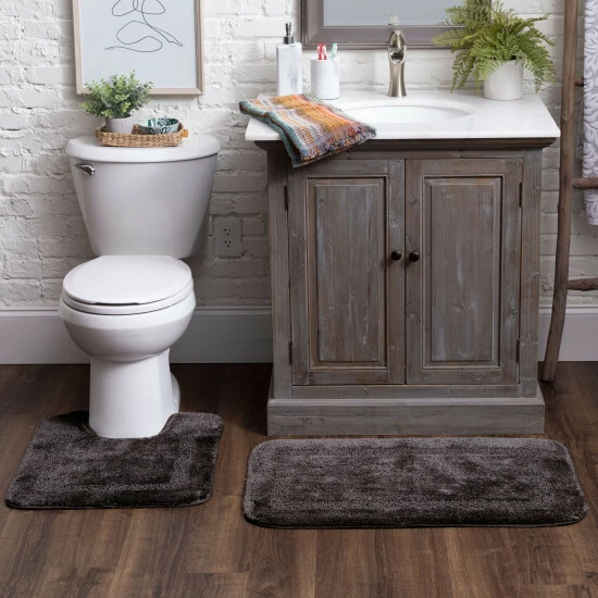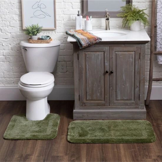 Bring warmth and color to your bathroom with the Mohawk Home Facet Bath Rug. This bath rug features a dynamic cut and looped border design with thick super soft plush pile that offers superior comfort underfoot and a latex backing for precise placement in high traffic areas. Cast in rich colorways such as blue, red, green, grey, brown, beige, and purple give this bath rug the versatility to blend into nearly any decorative ensemble. Available in a variety of rounded corner rectangle sizes as well as contour, this rug is a great choice for adding style to any bath space.