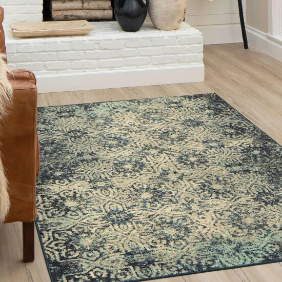 Shades of navy, indigo, icy blue, and cream are patterned to create the ornate design of Mohawk Homeโs Milan Area Rug in Navy. A traditional, intricate pattern and a modern color palette blend perfectly to create this designer style that is sure to refresh any space. Carefully crafted from Mohawkโs exclusive EverStrandโข 100% polyester yarn, this style is precision printed on a loop-pile cut base to ensure supreme quality, soft touch, and superior color clarity.