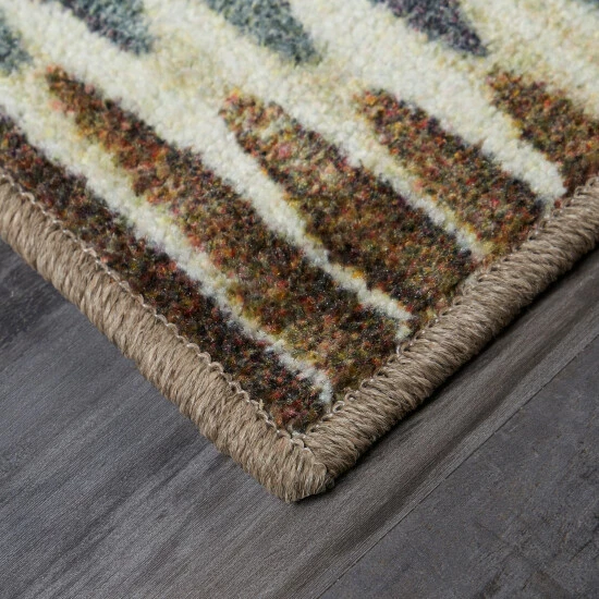 Abstract painterly inspired stripes create contemporary dimensionality in the modern geometric design of Mohawk Home’s Nojus Brown area rug. A versatile neutral color palette of grey, ivory, cream, brown and beige illuminates the diamond shaped tile motif. When it comes to color, the sky is no longer the limit with the endless possibilities of Mohawk Home’s revolutionary Prismatic Collection. Thoughtfully crafted in the U.S.A. in small batches utilizing Mohawk Home’s exclusive Precision Dye Injected Printer, the Prismatic Collection is radiantly redefining printed rugs, literally one original design at a time. Designed on a plush EverStrandโข tufted base, each style in this collection features superior strength stain resistance and a cozy soft touch. Consciously created with EverStrandโข yarn, a premium recycled polyester produced from post-consumer plastic water bottles, this innovative collection offers environmentally friendly options that are as easy on the eyes as they are the world around us. Keep your new rug and the flooring beneath looking their best with an essential all-surface, earth conscious rug pad, crafted of 100% recycled fibers and certified Green Label Plus by The Carpet & Rug Institute.