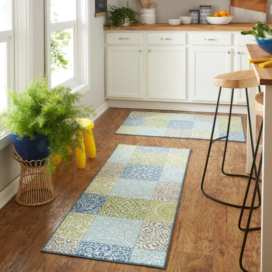 Eclectic, boho chic artistry is showcased in the color block tile inspired style of Mohawk Homes Amadora Rug. Created with Mohawk Homes advanced print technology, this rug from the Soho Collection offers vivid color clarity and is crafted with Mohawk Homes exclusive Wear-Dated nylon yarn for a dependable durability. Highly resistant to crushing, matting and every day wear-and-tear, this low-profile design is a smart solution for busy households or areas with high foot traffic. Sumptuously soft to the touch, this area rug also offers a superior stain resistance. Live worry free with easy care! Simply spot clean as needed with a mild solution of detergent and water.
