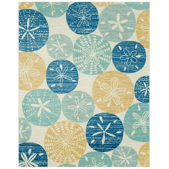 Coastal, nautical, tropical- if you inspired by the sea this design is for you! Featuring a sand dollar design in sun washed blue and tan hues this area rug from Mohawk Home is stunning. When it comes to color, the sky is no longer the limit with the endless possibilities of this design. Thoughtfully crafted in the U.S.A. in small batches utilizing exclusive Precision Dye Injected technology, these patterns are radiantly redefining printed rugs, literally one original design at a time. Designed on a plush EverStrandโข tufted base, each style in this collection features superior strength stain resistance and a cozy soft touch. Consciously created with EverStrandโข yarn, a premium recycled polyester produced from post-consumer plastic water bottles, this innovative collection offers environmentally friendly options that are as easy on the eyes as they are the world around us. Keep your new rug and the flooring beneath looking their best with an essential all-surface, earth conscious rug pad, crafted of 100% recycled fibers and certified Green Label Plus by The Carpet & Rug Institute.