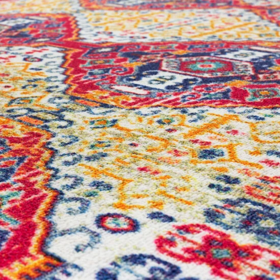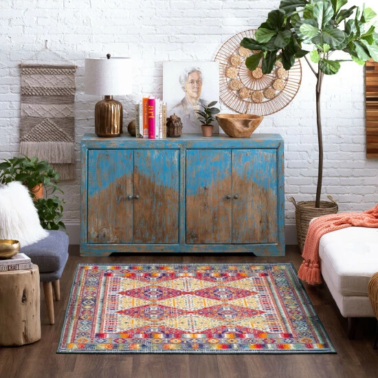 - STYLISH DESIGN: From casual to traditional, this trendsetting ornamental inspired area rug design with a bold color palette can be seamlessly integrated into a variety of home décor styles.