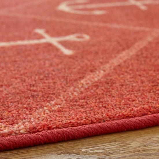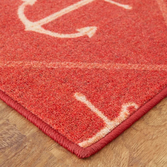 Add a bold accent to any room with the exquisite Mohawk Home Nautical Anchors Area Rug. Its bold crimson color is balanced by elegant anchors printed in white, for a look that’s both striking and refined. Made with exclusive EverStrand, a premium polyester yarn created from post-consumer recycled plastic bottles, this eco-friendly rug offers sumptuous softness and rich colors with the dependable durability needed for busy households.ย