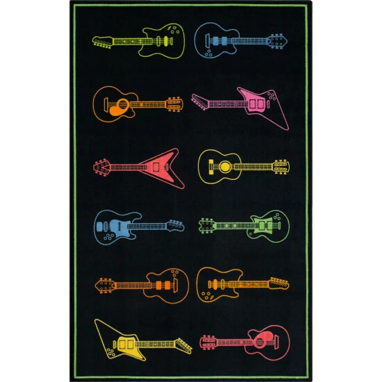 - STYLISH DESIGN: This trendsetting guitar inspired area rug design with a bold color palette instantly brings fun rock n’ roll style to any space.