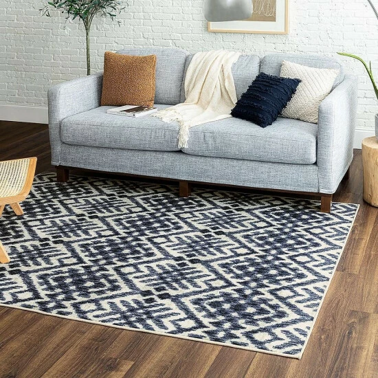 - STYLISH DESIGN: This trendsetting geometric lattice inspired area rug design with a versatile cool color palette can be seamlessly integrated into a variety of home dรฉcor styles.ย