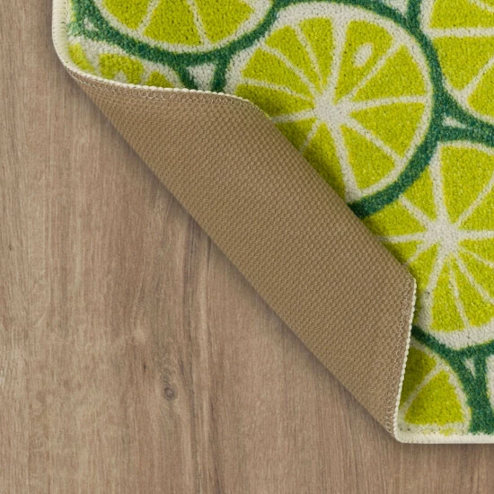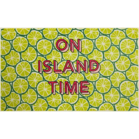 The fun and bright design of Mohawk Home’s On Island Time Accent Rug in Lime Green is sure to make you feel on vacation even when you can’t be. Bright colored limes decorate the canvas of this style and are complemented with a cheery script saying “On Island Time” in pink. Reenergize your space with radiant color and original artwork digitally printed over a plush canvas of Mohawk Home’s exclusive ecofriendly EverStrand™, a premium synthetic yarn created from post-consumer recycled plastic bottles. While EverStrand™ is renowned for its softness, this silky yarn also offers superior strength stain resistance, illustrious fade resistant color clarity and dependable durability ideal for high-traffic spaces with kids and pets.