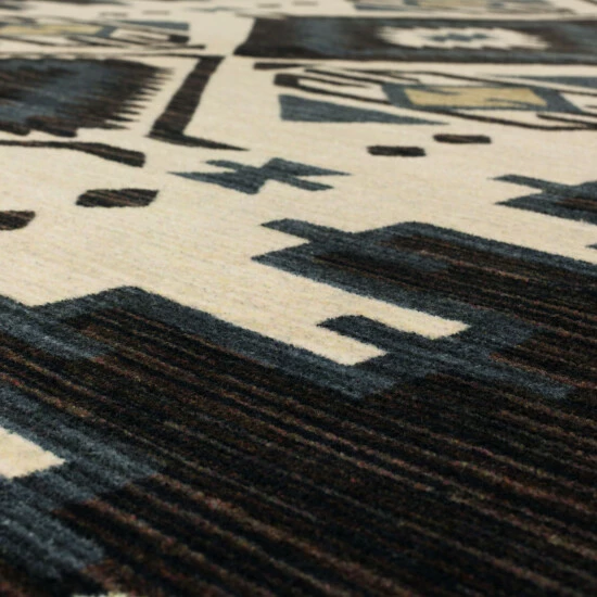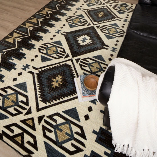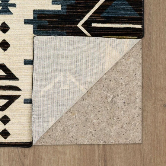 Mohawk Home’s Osbeorn Black area rug showcases designs inspired by the southwest. This rug offers an edgy pattern and vibrant color shades of cream, black, blue and gold. This gorgeous area rug will offer a distinct style to any space. When it comes to color, the sky is no longer the limit with the endless possibilities of this design. Thoughtfully crafted in the U.S.A. in small batches utilizing exclusive Precision Dye Injected technology, these patterns are radiantly redefining printed rugs, literally one original design at a time. Designed on a plush EverStrandโข tufted base, each style in this collection features superior strength stain resistance and a cozy soft touch. Consciously created with EverStrandโข yarn, a premium recycled polyester produced from post-consumer plastic water bottles, this innovative collection offers environmentally friendly options that are as easy on the eyes as they are the world around us. Keep your new rug and the flooring beneath looking their best with an essential all-surface, earth conscious rug pad, crafted of 100% recycled fibers and certified Green Label Plus by The Carpet & Rug Institute.
