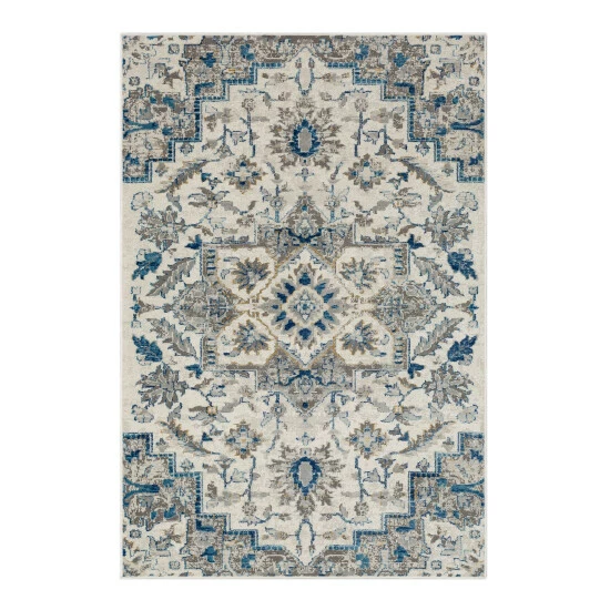 The Mohawk Home Pandora Medallion Area Rug Collection features an intricate floral medallion design in versatile a neutral color palette option with pops of blue and grey. Flawlessly finished, this collection presents a soft surface, rich color, and defined details that perfectly accent any room. Made with a polypropylene and polyester blend, offering dependable durability, superior stain resistance, and unbeatable resiliency against daily wear-and-tear. An excellent choice for high-traffic areas and households with kids and pets. Available in scatters, runners, and popular sizes such as 5×8 and 8×10, this collection is ideal for adding style to any indoor space, such as the living room, dining room, bedroom, office, kitchen, hallway, and more.