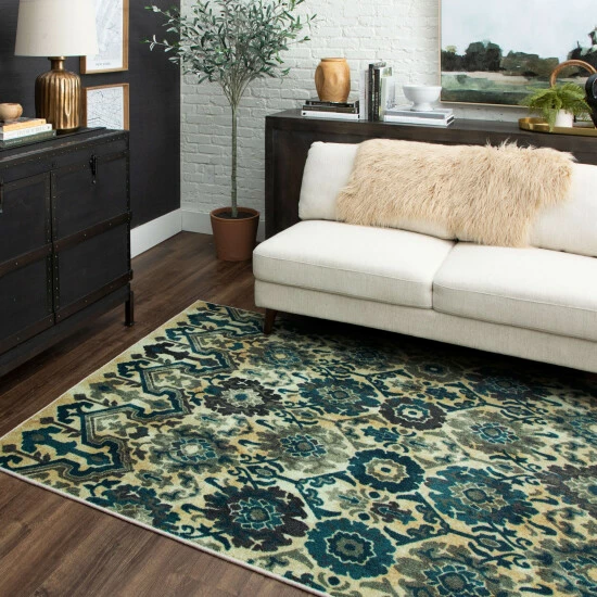 Made with EverStrand, a premium polyester yarn crafted from recycled plastic bottles, this eco-friendly material offers a sumptuously soft feel, radiant fade-proof color, and intricate detailing. This plush rug pile offers dependable durability, featuring stain and fade resistance, making it an ideal choice for busy households with kids and pets. Available in runners, scatters, and popular rectangle sizes such as 5×8 and 8×10, this detailed area rug design is a great choice for adding bold global styling to any space in your home.