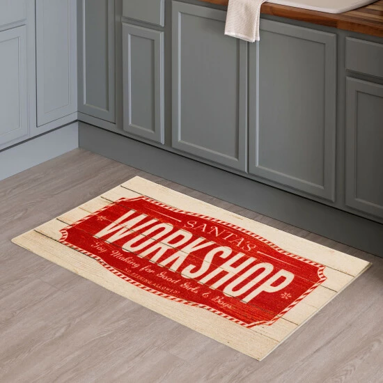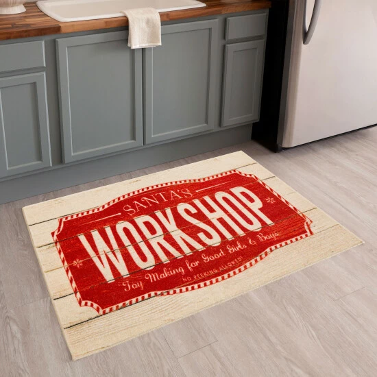 Designed with an illustrative pattern, this modern polyester rug is perfect for celebrating the Holidays. The Santa’s Workshop accent rug in red features original artwork digitally printed over a plush canvas of Mohawk Home’s exclusive ecofriendly EverStrandโข, a premium synthetic yarn created from post-consumer recycled plastic bottles. โขFESTIVE DESIGN: This trendsetting holiday inspired mat with a bold color palette instantly adds fun and festive flair to any area.โขDURABLE MATERIALS: Made from 100% recycled polyester with a non-skid latex backing, this area rug offers superior strength stain resistance and fade-resistant color clarity while also maintaining super soft feel, fixed shape, and precise placement. A great choice for high-traffic areas and households with kids and pets.โขEASY CARE AND CLEAN: The easy-to-clean surface, keeps this area rug attractive for years to come. Simply vacuum regularly, spot clean with a solution of mild detergent and water, or clean professionally when needed.โขMADE IN THE USA: As the world’s largest area rug manufacturer, Mohawk products offer a 1 Year Limited Manufacturing Defects Warranty and are proudly made in America of US and imported materials.