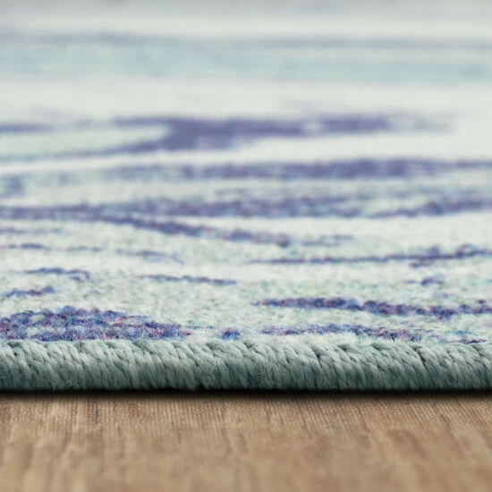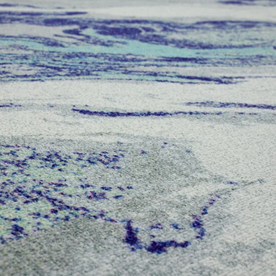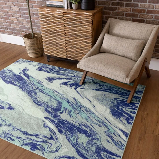 Mixed hues of blue, gray, and cream combine to create the stunning modern design of the Mohawk Home Sovanna Area Rug. Patterned with an intricate marble inspired abstract design, this style is a stunning contemporary addition to any space.ย