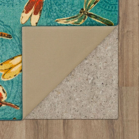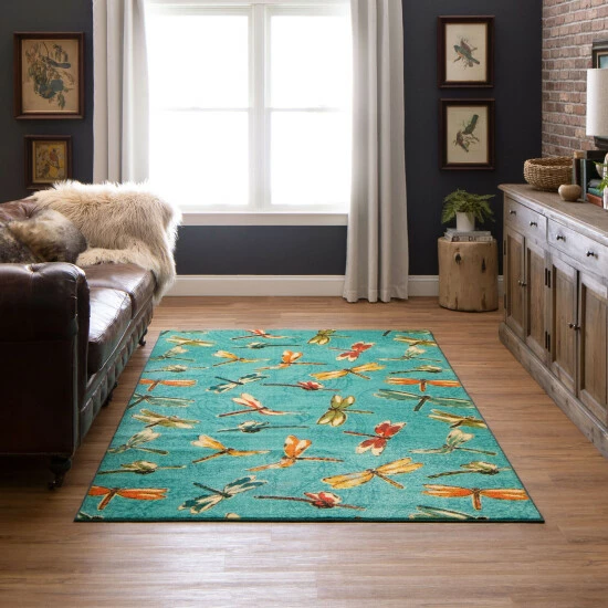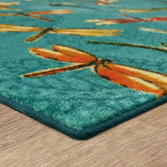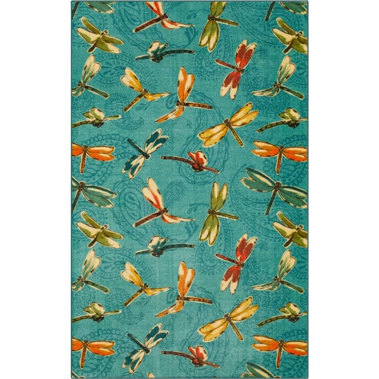 A modern multicolored medley of dragonflies soars over the teal aqua blue colored contemporary canvas of the Mohawk Home Summer Dragonflies Area Rug. Fun and fresh for kids corners or anywhere you crave a little more color, this whimsical nature inspired design is sure to wake up any space!.