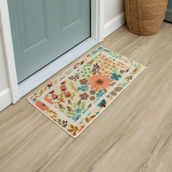 Blush pink, light blue, grey, gold and purple blossoms bloom on the feminine canvas of the Mohawk Home Summer Floral Accent Rug in Multicolor. This designer accent rug is available in size 18โ x 30โ, 24โ x 40โ and 30โ x 50โ and is ideal for entryways, kitchens, powder rooms, offices and more. Reenergize your space with radiant color and original artwork digitally printed over a plush canvas of Mohawk Homeโs exclusive ecofriendly EverStrandโข, a premium synthetic yarn created from post-consumer recycled plastic bottles. While EverStrandโข is renowned for its softness, this silky yarn also offers superior strength stain resistance, illustrious fade resistant color clarity and dependable durability ideal for high-traffic spaces with kids and pets.