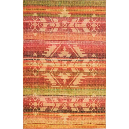 Southwestern and Aztec artistry is refreshed with a wash of modern color and ombre inspired stripes in the contemporary boho chic design of the Mohawk Home Tribal Blanket Area Rug. Radiant with overdyed sunset inspired hues like golden yellow, fiery red, magenta pink, and deep orange, this globally inspired area rug will add depth to any interior.
