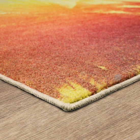 Inspired by the rising sun, this tropical design features palm tree silhouettes against a warm golden background. Bring a touch of tropical charm to any space inside your home with this delightful and durable rug. Made with exclusive EverStrand, a premium polyester yarn created from post-consumer recycled plastic bottles, this eco-friendly rug offers sumptuous softness and rich colors with the dependable durability needed for busy households. Available in 5×8, 8×10, and other popular sizes, this area rug is a great choice for adding style to a variety of spaces in your home.