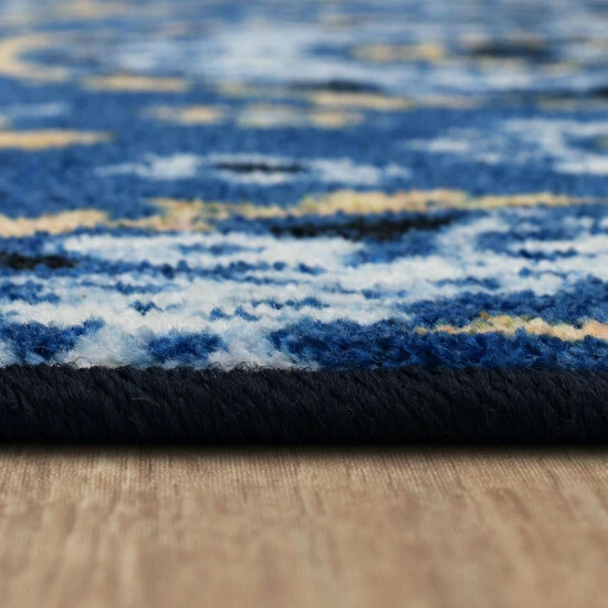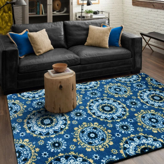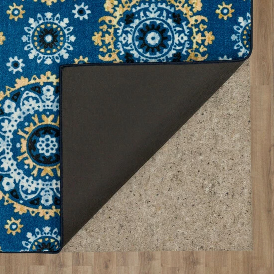 Globally inspired circular medallions steal their influence from exotic boho chic designs in Mohawk Home’s brightly colored Tulsa Medallion Area Rug in Medium. Stunning in an overdyed modern color palette of indigo blue, sunny yellow and pure white, the Tulsa Medallion Area Rug is fresh and fashionable. When it comes to color, the sky is no longer the limit with the endless possibilities of Mohawk Home’s revolutionary Prismatic Collection. Thoughtfully crafted in the U.S.A. in small batches utilizing Mohawk Home’s exclusive Precision Dye Injected Printer, the Prismatic Collection is radiantly redefining printed rugs, literally one original design at a time. Designed on a plush EverStrand™ tufted base, each style in this collection features superior strength stain resistance and a cozy soft touch. Consciously created with EverStrand™ yarn, a premium recycled polyester produced from post-consumer plastic water bottles, this innovative collection offers environmentally friendly options that are as easy on the eyes as they are the world around us. Keep your new rug and the flooring beneath looking their best with an essential all-surface, earth conscious rug pad, crafted of 100% recycled fibers and certified Green Label Plus by The Carpet & Rug Institute.