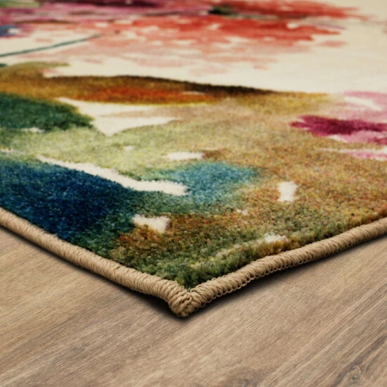 Delicate petals dazzle in a rich, overdyed multicolor palette in the modern painterly inspired floral motif of Mohawk Home’s Watercolor Garden Area Rug. Pink, magenta, purple, red, green and tan colors blend together beautifully over this enchanting nature inspired style. When it comes to color, the sky is no longer the limit with the endless possibilities of Mohawk Home’s revolutionary Prismatic Collection. Thoughtfully crafted in the U.S.A. in small batches utilizing Mohawk Home’s exclusive Precision Dye Injected Printer, the Prismatic Collection is radiantly redefining printed rugs, literally one original design at a time. Designed on a plush EverStrandโข tufted base, each style in this collection features superior strength stain resistance and a cozy soft touch. Consciously created with EverStrandโข yarn, a premium recycled polyester produced from post-consumer plastic water bottles, this innovative collection offers environmentally friendly options that are as easy on the eyes as they are the world around us. Keep your new rug and the flooring beneath looking their best with an essential all-surface, earth conscious rug pad, crafted of 100% recycled fibers and certified Green Label Plus by The Carpet & Rug Institute.